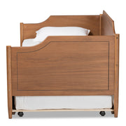Create A Cozy Environment For Lounging And Sleeping With The Alya Daybed. Made In Malaysia, This Piece Combines The Functions Of Sofa And Bed Into One. Its Strong Wood Frame Ensures Durability, While Its Classic Walnut Brown Finish Adds Warmth To Any Space. Inspired By Farmhouse Aesthetics, The Daybed Features Cut-Out Panels Enhanced With Charming Inset Detailing. Tapered Legs Lend An Elegant Touch. This Versatile Piece Is Also Fitted With A Roll-Out Trundle To Provide Convenient Accommodation For Overnight Guests. Requiring Assembly, The Alya Daybed Is The Quintessential Piece For A Childs Room Or Guestroom. Color And Finishing: Walnut/Gold