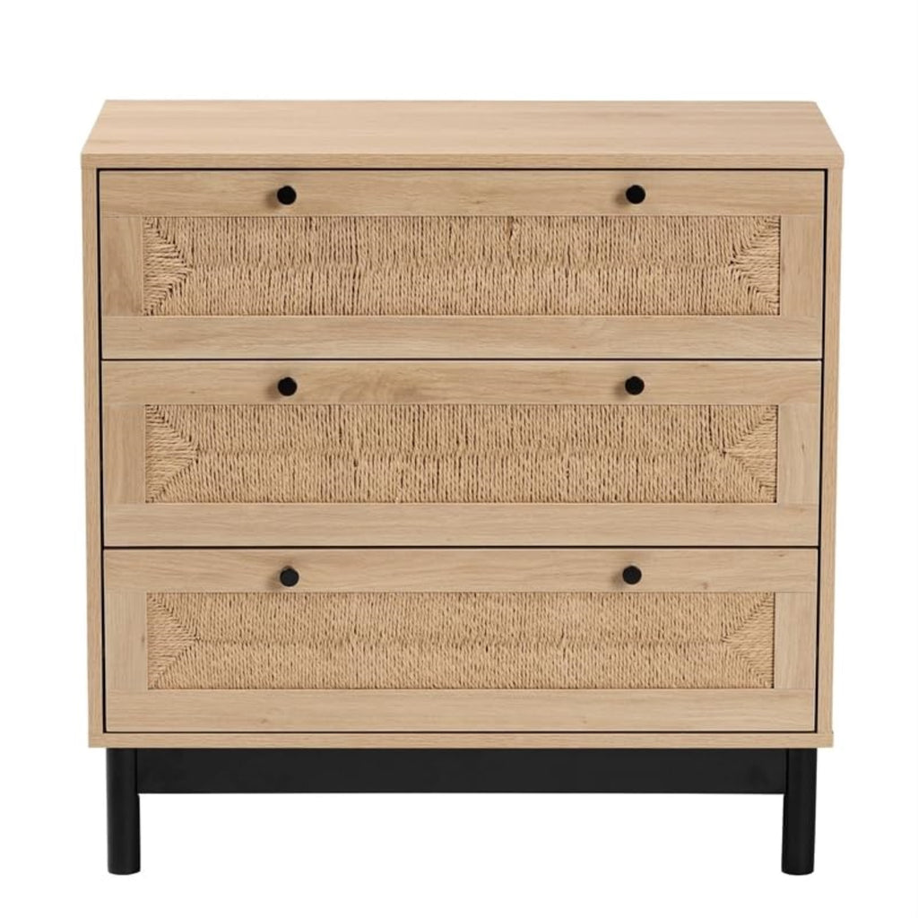Satisfy The Needs Of Your Space With The Versatile Craftsmanship Of The Cherelle Storage Cabinet. Made In China, This Mid-Century Inspired Piece Is Crafted From Sturdy Wood. Three Wide Drawers Offer Ample Space To Organize A Variety Of Household Essentials While Reserving The Tabletop For Decorations. The Cherelle Requires Assembly And Features Woven Rope Embellishments For A Touch Of Rustic Flare. Round Door Knobs Lend Eye-Catching Geometry, Making The Cherelle Storage Cabinet A Refreshing Addition To Any Layout.