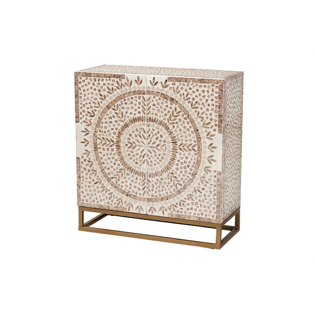 Imbue Your Space With A Sense Of Avantgarde Refinement With The Stunning Ercilia Storage Cabinet. Made In Vietnam, This Bohemian Piece Consists Of A Sturdy Wood Frame Beautifully Ornamented With Natural Mother Of Pearl Showcasing A Gorgeous Floral Design. The Doors Open To Reveal Two Spacious Shelves Perfect For Organizing And Decluttering Busy Areas Of Your Home. The Ercilia Will Arrive Fully Assembled And Utilizes An Openwork Metal Base For Excellent Stability And Support. Handleless Doors Accentuate The Avantgarde Nature Of The Piece, Making The Ercilia Storage Cabinet A Remarkable Addition To Any Space.