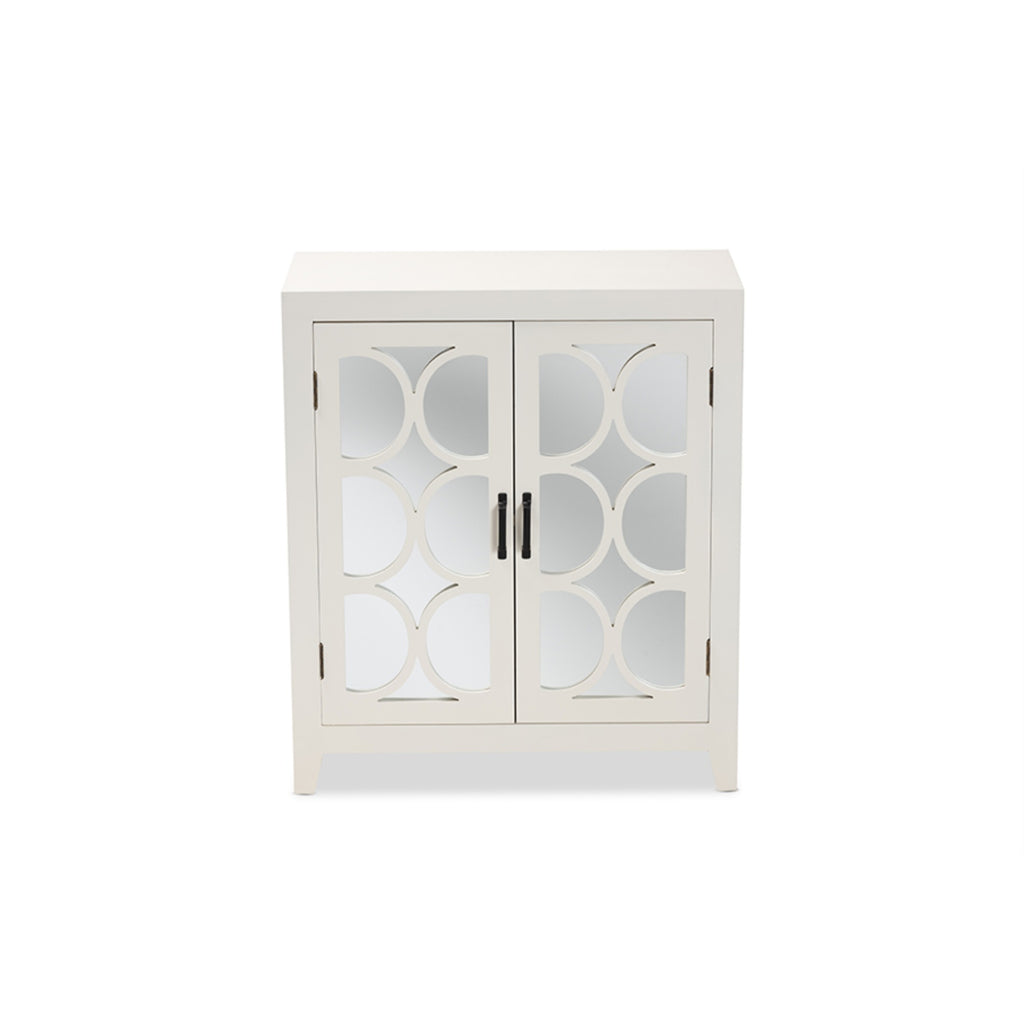 Baxton Studio Garcelle Modern And Contemporary White Finished Wood And Mirrored Glass 2-Door Sideboard