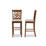 Superb Comfort Outfitted In Contemporary Style Distinguishes The Jason Bar Stool. Made In Malaysia, The Jason Is Crafted From Wood In A Traditional Square Frame. The Bar Stool Is Fitted With A Foam-Padded Seat Underneath A Smooth Layer Of Fabric And Features A Sleek Cut-Out Design On Its Back. This Piece Requires Assembly And Is Finished In A Warm Walnut Brown That Complements The Lighter Tones Of The Fabric. Sturdy Silver Metal Is Fitted On The Front Footrest, Making The Jason Bar Stool Well Suited For Both Commercial And Residential Settings.