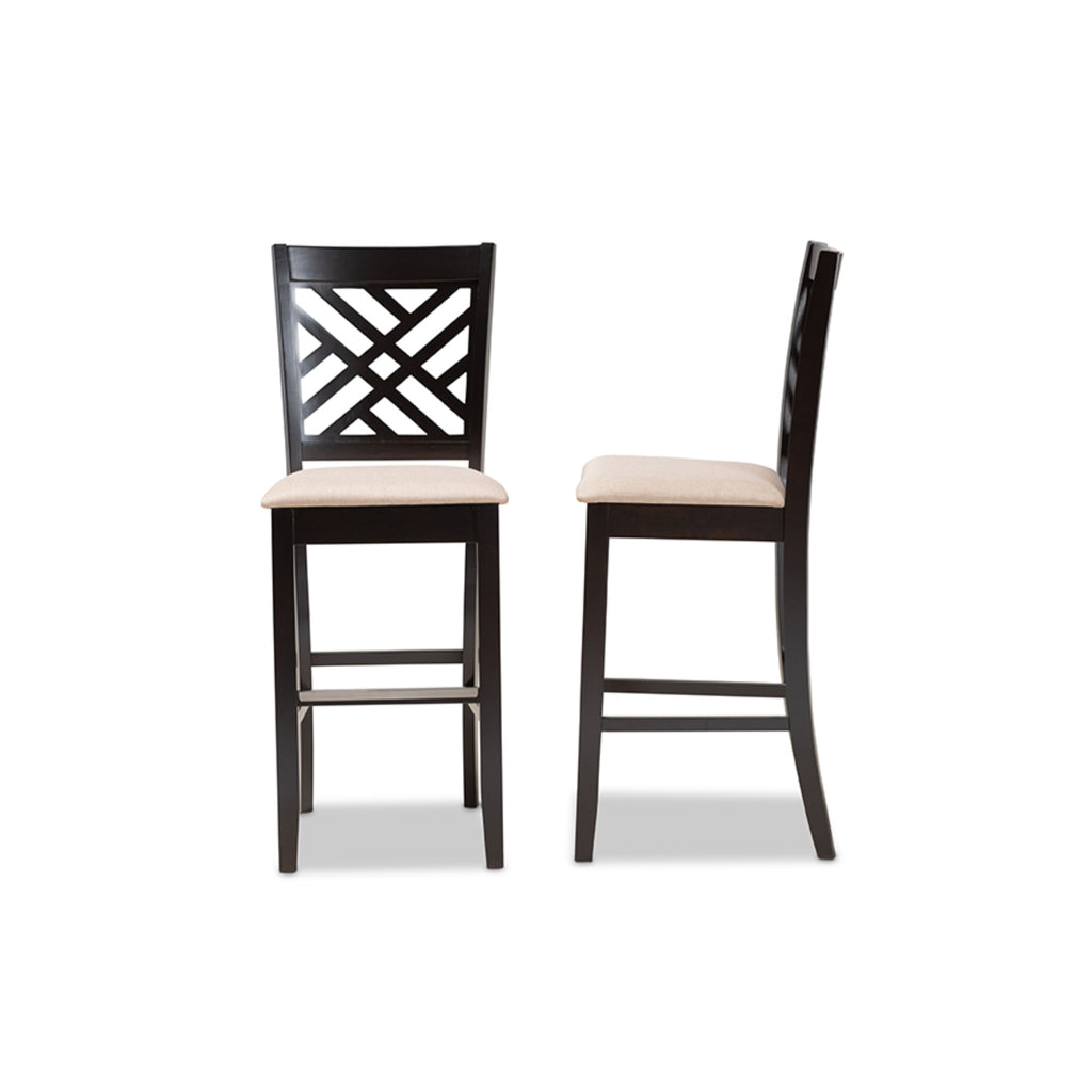 Superb Comfort Outfitted In Contemporary Style Distinguishes The Jason Bar Stool. Made In Malaysia, The Jason Is Crafted From Wood In A Traditional Square Frame. The Bar Stool Is Fitted With A Foam-Padded Seat Underneath A Smooth Layer Of Fabric And Features A Sleek Cut-Out Design On Its Back. This Piece Requires Assembly And Is Finished In A Rich Espresso Brown That Complements The Lighter Tones Of The Fabric. Sturdy Silver Metal Is Fitted On The Front Footrest, Making The Jason Bar Stool Well Suited For Both Commercial And Residential Settings.
