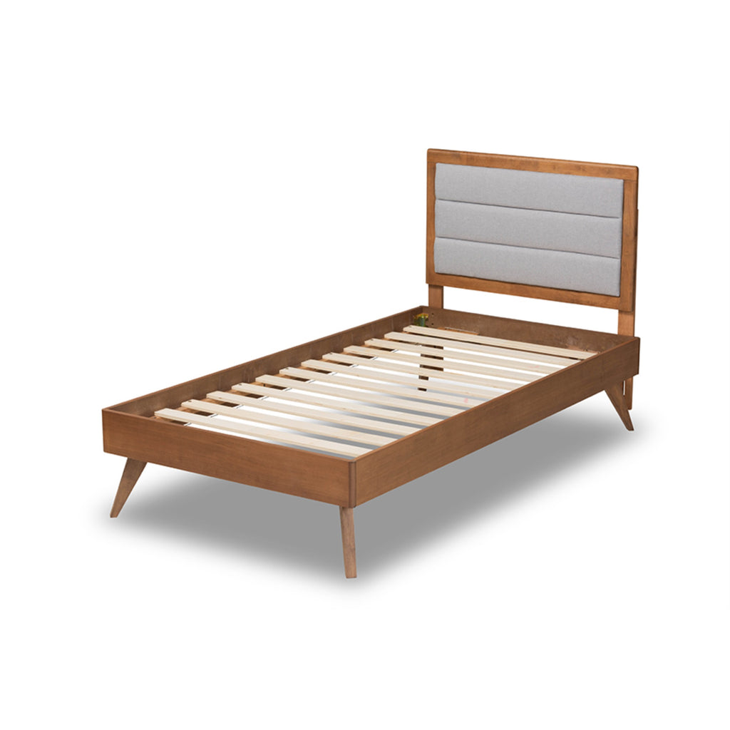 Develop Your Bedroom Into A Cozy Getaway With The Linn Bed. Made In Malaysia, This Bed Is Constructed From Wood Showcasing A Warm Walnut Brown Finish That Adds Warmth To Any Space. Its Channel Tufted Headboard Is Upholstered In Smooth Fabric And Padded With Plush Foam To Provide Excellent Back Support When Sitting Up In Bed. Requiring Assembly, The Linn Utilizes Wood Slats For Mattress Support, Which Eliminate The Need For A Box Spring. With A Sleek Yet Cozy Design, The Linn Bed Is A Remarkable Addition To Any Bedroom.