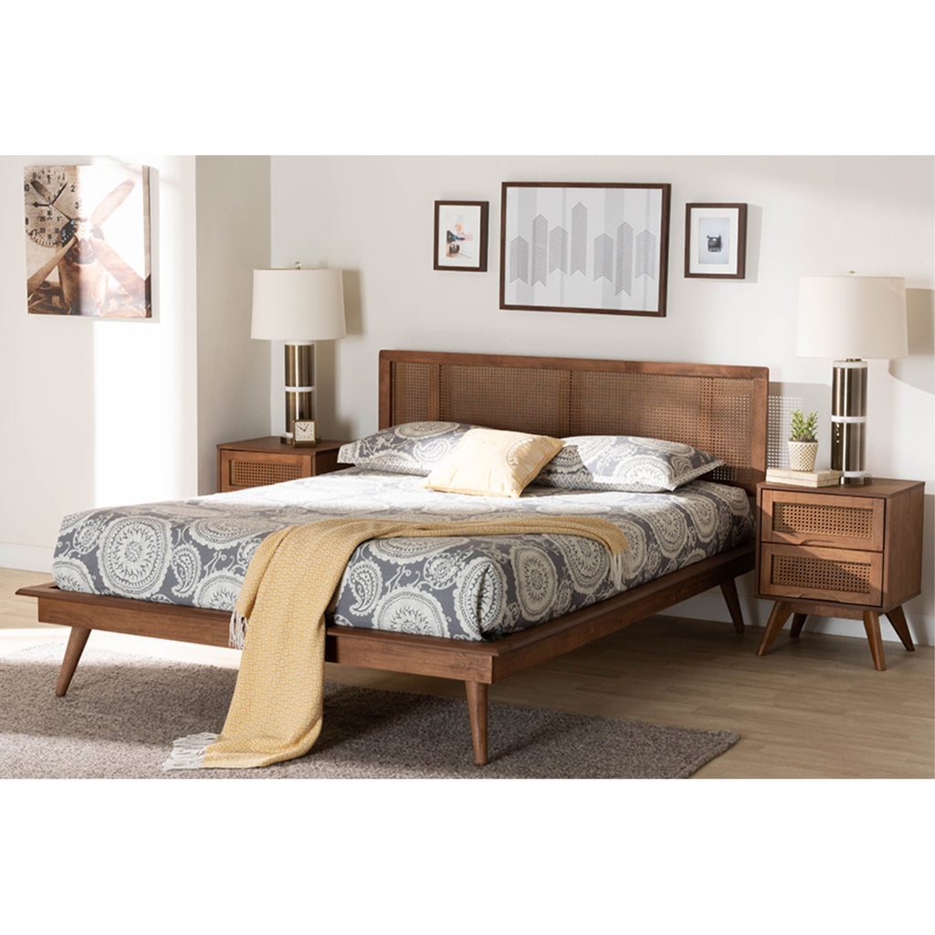 Craft A Personal Oasis Of Classic Elegance In Your Bedroom With The Fantastic Nura Bedroom Set. Made In Malaysia, This Mid-Century Set Includes One Bed And Two Nightstands Crafted From Sturdy Wood. Each Nightstand Is Equipped With Two Drawers To Organize A Variety Of Bedroom Essentials While Reserving The Tabletops For Nightly Use. The Nura Requires Assembly And Features Wood Slats For Mattress Support, Eliminating The Need For A Box Spring. Woven Rattan Embellishments Lend Traditional Vigor, Making The Nura Bedroom Set A Remarkable Arrangement For Any Bedroom.