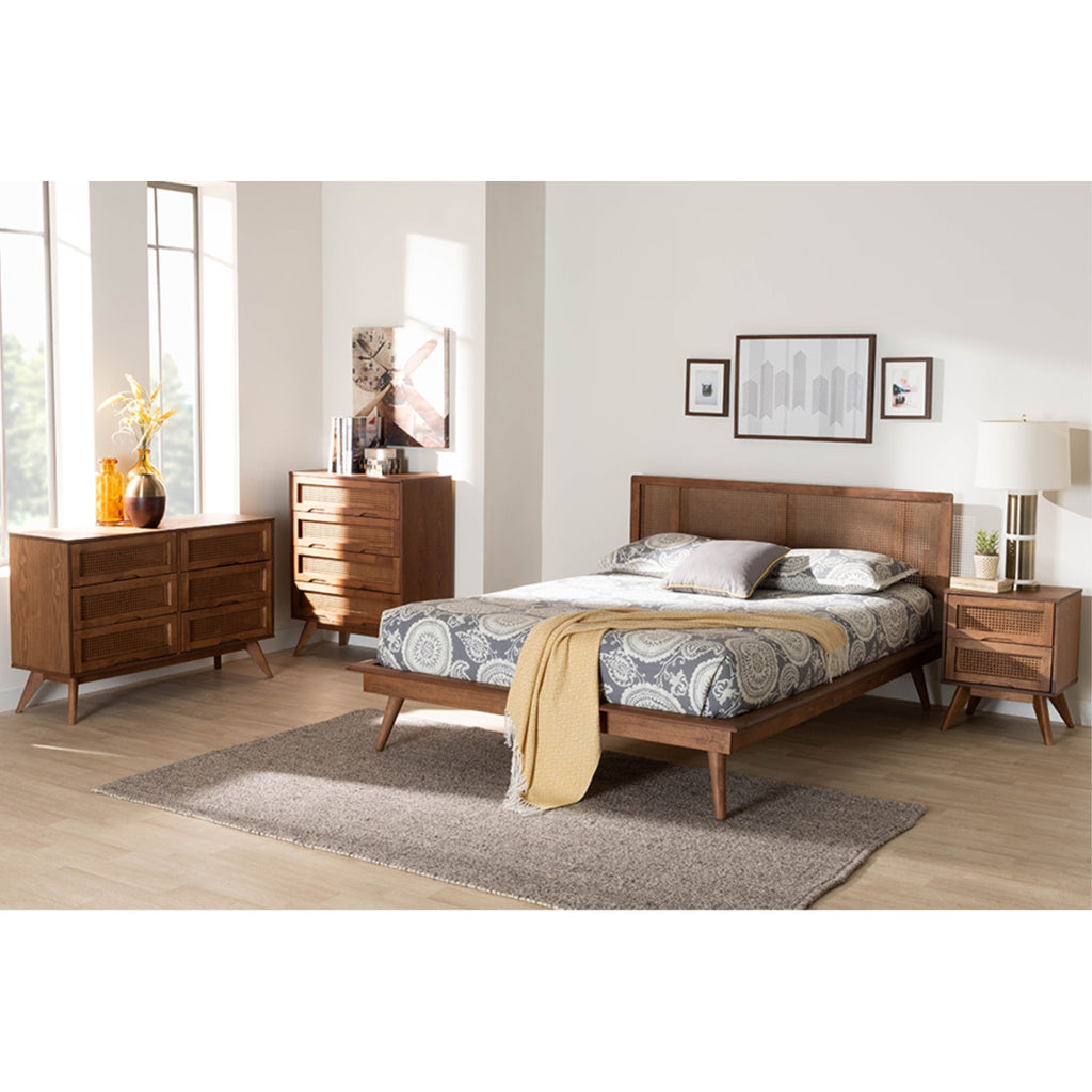 Craft A Personal Oasis Of Classic Elegance In Your Bedroom With The Fantastic Nura Bedroom Set. Made In Malaysia, This Mid-Century Set Includes One Bed, One Chest, One Dresser, And One Nightstand Crafted From Sturdy Wood. The Dresser And Chest Offer Plentiful Storage Space To Organize Your Bedroom, While The Nightstand Provides Superb Nighttime Convenience. The Nura Requires Assembly And Features Wood Slats For Mattress Support, Eliminating The Need For A Box Spring. Woven Rattan Embellishments Lend Traditional Vigor, Making The Nura Bedroom Set A Remarkable Arrangement For Any Bedroom.
