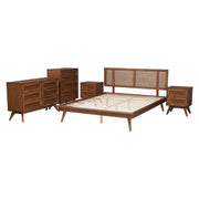 Craft A Personal Oasis Of Classic Elegance In Your Bedroom With The Fantastic Nura Bedroom Set. Made In Malaysia, This Mid-Century Set Includes One Bed, One Chest, One Dresser, And Two Nightstands Crafted From Sturdy Wood. The Dresser And Chest Offer Plentiful Storage Space To Organize Your Bedroom, While The Nightstands Provide Superb Nighttime Convenience. The Nura Requires Assembly And Features Wood Slats For Mattress Support, Eliminating The Need For A Box Spring. Woven Rattan Embellishments Lend Traditional Vigor, Making The Nura Bedroom Set A Remarkable Arrangement For Any Bedroom.