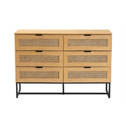 Uplift Your Domestic Ambiance To A Higher Regard With The Gentle Tones Of The Sawyer Storage Cabinet. Made In China, This Handy Piece Consists Of A Wood Frame Supported By An Openwork Metal Base. Six Drawers Provide Superb Storage For Your Belongings While Woven Rattan Embellishments Add Mid-Century Flair. The Sawyer Requires Assembly And Features Slim Drawer Handles For A Subtle Touch Of Modern Minimalism. Blending With A Variety Of Room Layouts And Styles, The Sawyer Cabinet Is An Easy And Efficient Addition To Any Space.Due To The Nature Of The Natural Materials Used In This Product, It May Have Variations In Areas Such As, But Not Limited To, Color, Pattern, Grain And Texture. The Hair-Like Strands Of Rattan/Rattan-Fiber Are Common Due To Nature Of The Material.