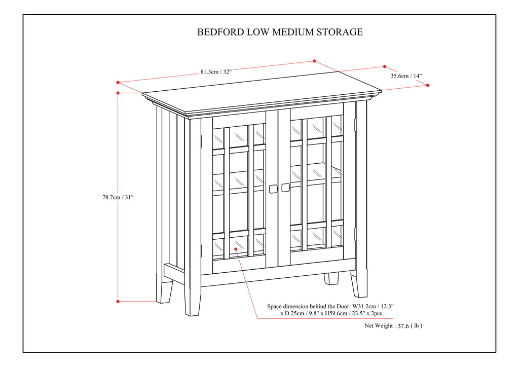 You Like To Be Neat And Tidy But Don'T Have A Lot Of Space For A Large Cabinet. It Is For This Reason We Designed The Bedford Low Storage Cabinet. Two Glass Doors Open To Two Adjustable Shelves Allowing You To Reconfigure The Layout To Suit Your Needs. Display Your Fine China, Decorative Accents Or Even Movies On Dedicated Display Space For A Clean, Distinctive Look.