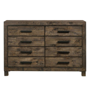 The dresser is constructed with a hardwood frame and is accented with veneer, providing durability and aesthetic appeal.