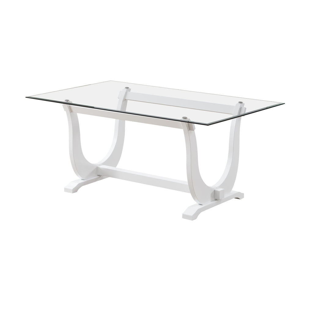 Benoit 7 Piece Glasstop Dining Set, Dark Brown Fabric & White Wood (Trestle Table & 6 High-Back Tufted Chairs)