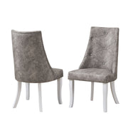Benoit Crystal Tufted Upholstered Dining Side Chairs, Gray Fabric & White Wood (Set Of 2). Dine-In Luxurious Style With These Benoit Upholstered Dining Chairs. Featuring A Curved High Back, Plush Cushioned Seat, And Deeply Tufted Polyester Upholstery Studded With Crystals, These Dining Chairs Are Sure To Take Your Dining Experience To A Whole New Level. White Curved Solid Wood Legs Complement The Stunning Upholstery For A Sleek, Contemporary Design And Provide Sturdy Support For Years To Come.