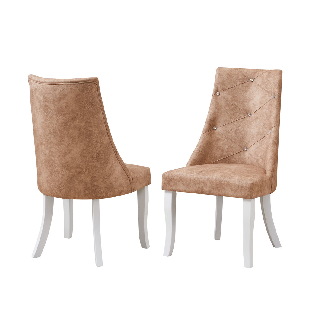 Benoit Crystal Tufted Upholstered Dining Side Chairs, Light Brown Fabric & White Wood (Set Of 2)
