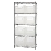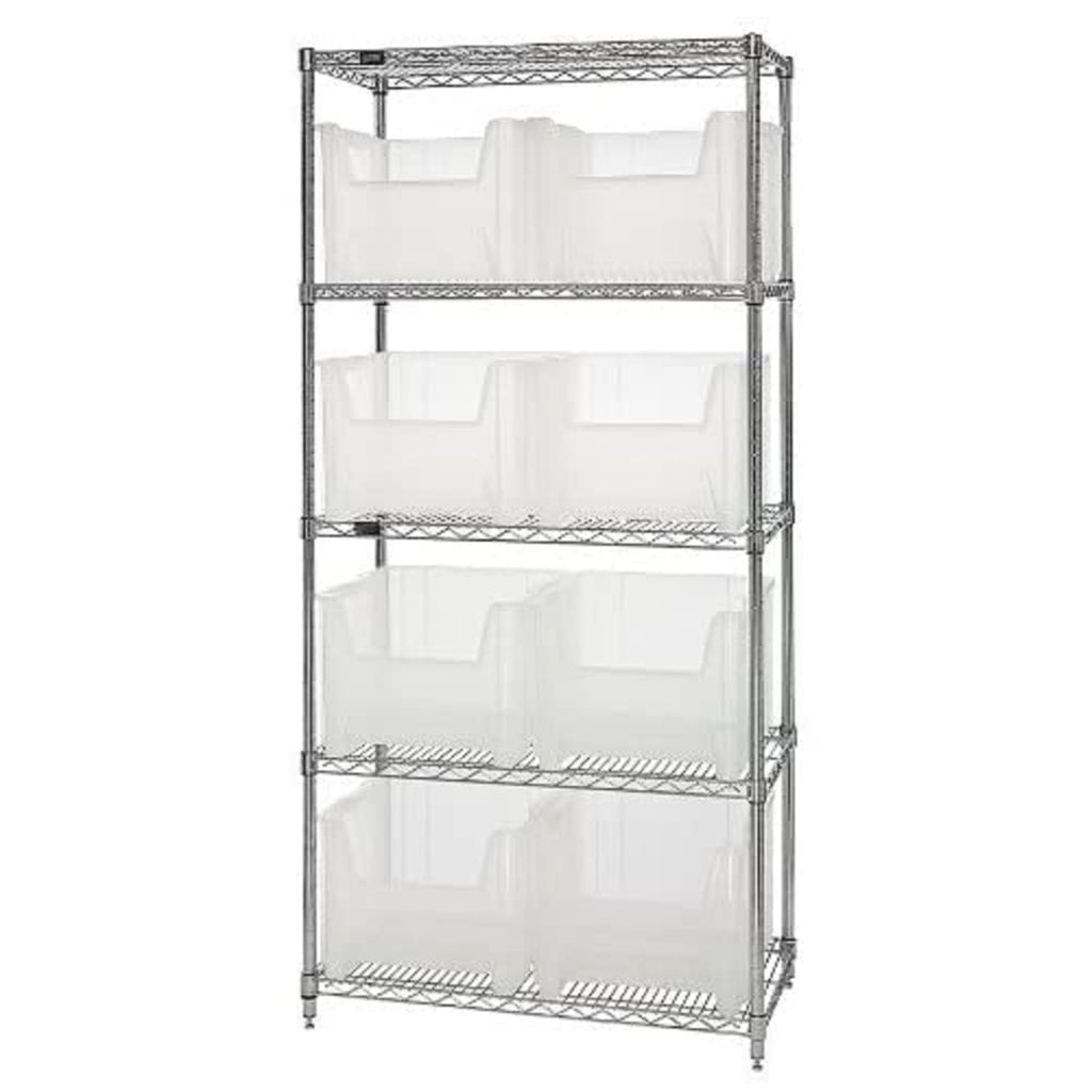 Bin Wire Shelving System, 36W X 18D X 74H, 800 Lbs Load Capacity Per Shelf, Includes: (5) Shelves And (8) Qgh800 Clear Bins, Chr