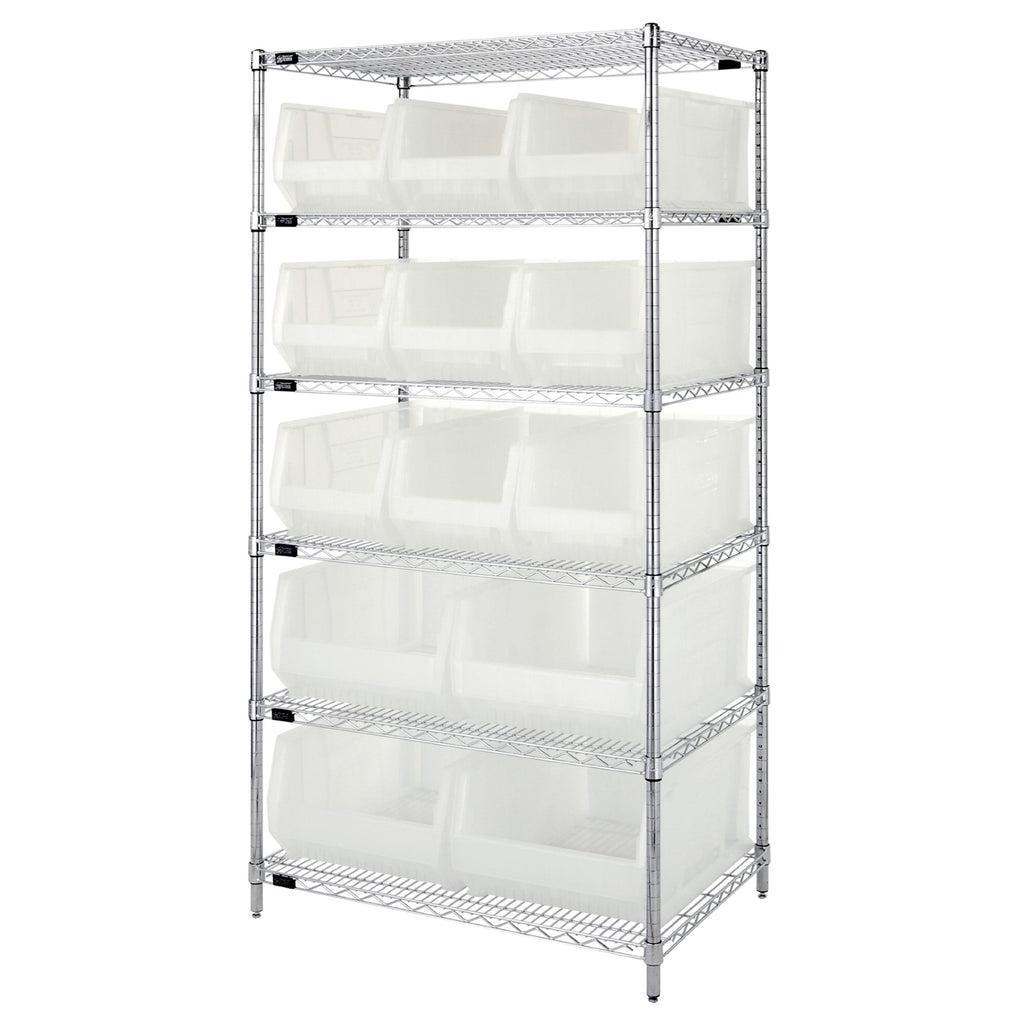 Genuine Quantum Modular Wire Systems Offer A Unique Combination Of Shelf And Post Sizes In A Variety Of Finishes To Compliment Any Application. The Split Sleeve And Grooved Numbered Posts Allow For Easy And Quick Assembly. The All Welded Shelf Construction Is Supported With Architectural Wire Trusses To Provide Between 600 Lb. And 800 Lb. Capacity Per Shelf. 9 Qus953Cl Bin Measures 23-7/8 Length By 11 Width By 10 Height And 4 Qus954Cl Bin Measures 23-7/8 Length By 16-1/2 Width By 11 Height. 1 Year Warranty Agianst Defects.