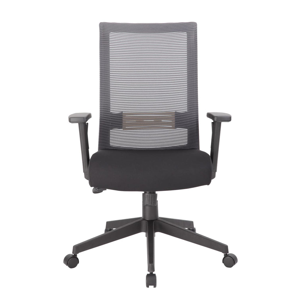 The Boss Office Products Mesh Task Chair features a horizontal mesh back for breathability, a Synchro-Tilt Mechanism for coordinated back and seat tilting, adjustable arms, a pneumatic gas lift for height adjustment, and a weight limit of 275 lbs.