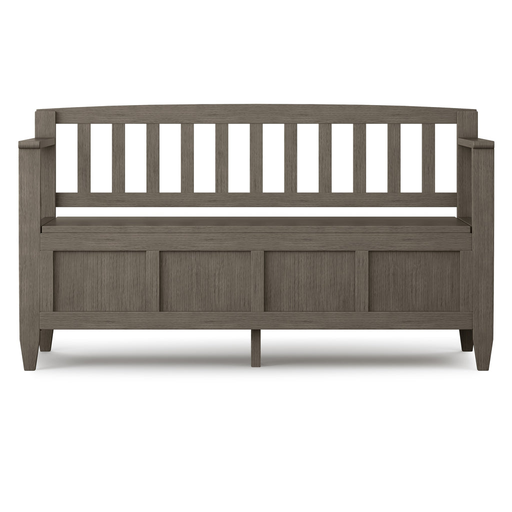 The bench features two large internal storage compartments, accessible via a lift-up lid.