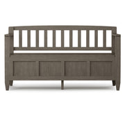 The bench features a contemporary farmhouse design, making it a stylish addition to various home decors.