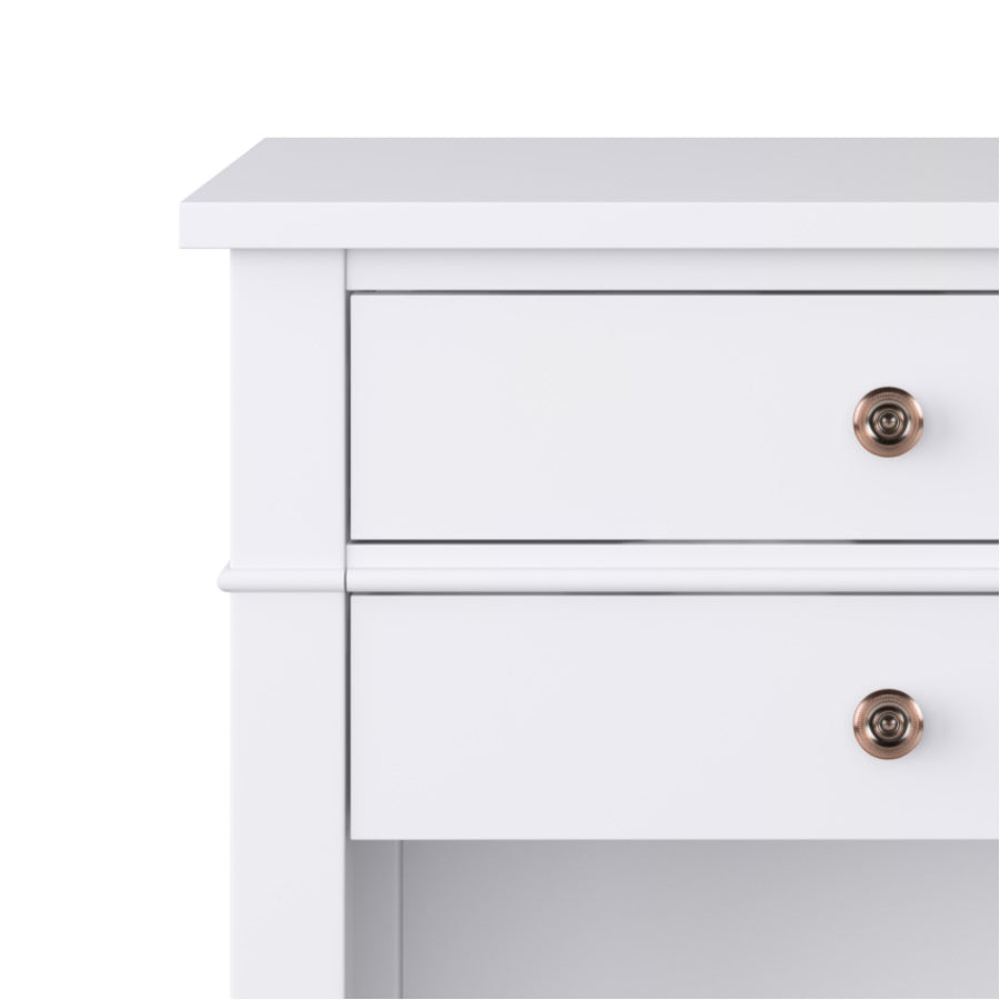 The Carlton Nightstand is handcrafted from high-quality solid wood and features a hand-finished white protective NC lacquer.