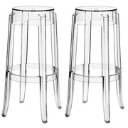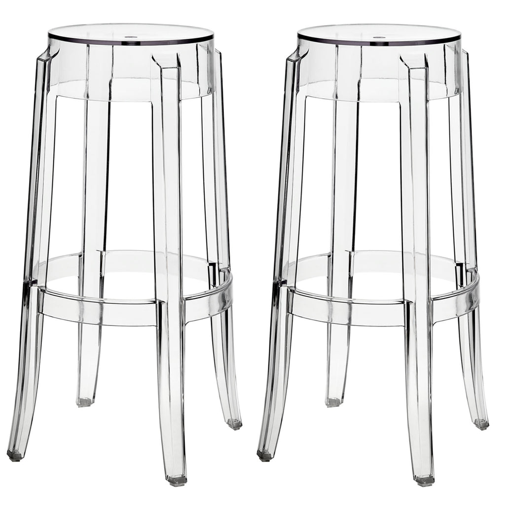 The Modway Casper bar stool is constructed from transparent acrylic, specifically durable polycarbonate, ensuring both style and strength.