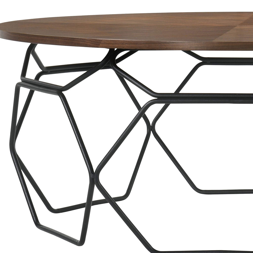 The Cosmo Walnut Veneer Coffee Table With Black Metal Base From Armen Living Has The Modern And Contemporary Style You And Your Home Have Been Searching For. Geometry Is A Staple Of This Piece. The Hexagonal Shapes That Create The Table Base Are Sleek And Clean, As Well As Strong And Sturdy - Holding The Tabletop And Any Objects You Place On It With Ease. The Tabletop Is Sectioned Into Four Quadrants With A Rich Wood Inlay That Will Absolutely Garner Attention In Your Home. Product Dimensions: 36W X 36D X 15H