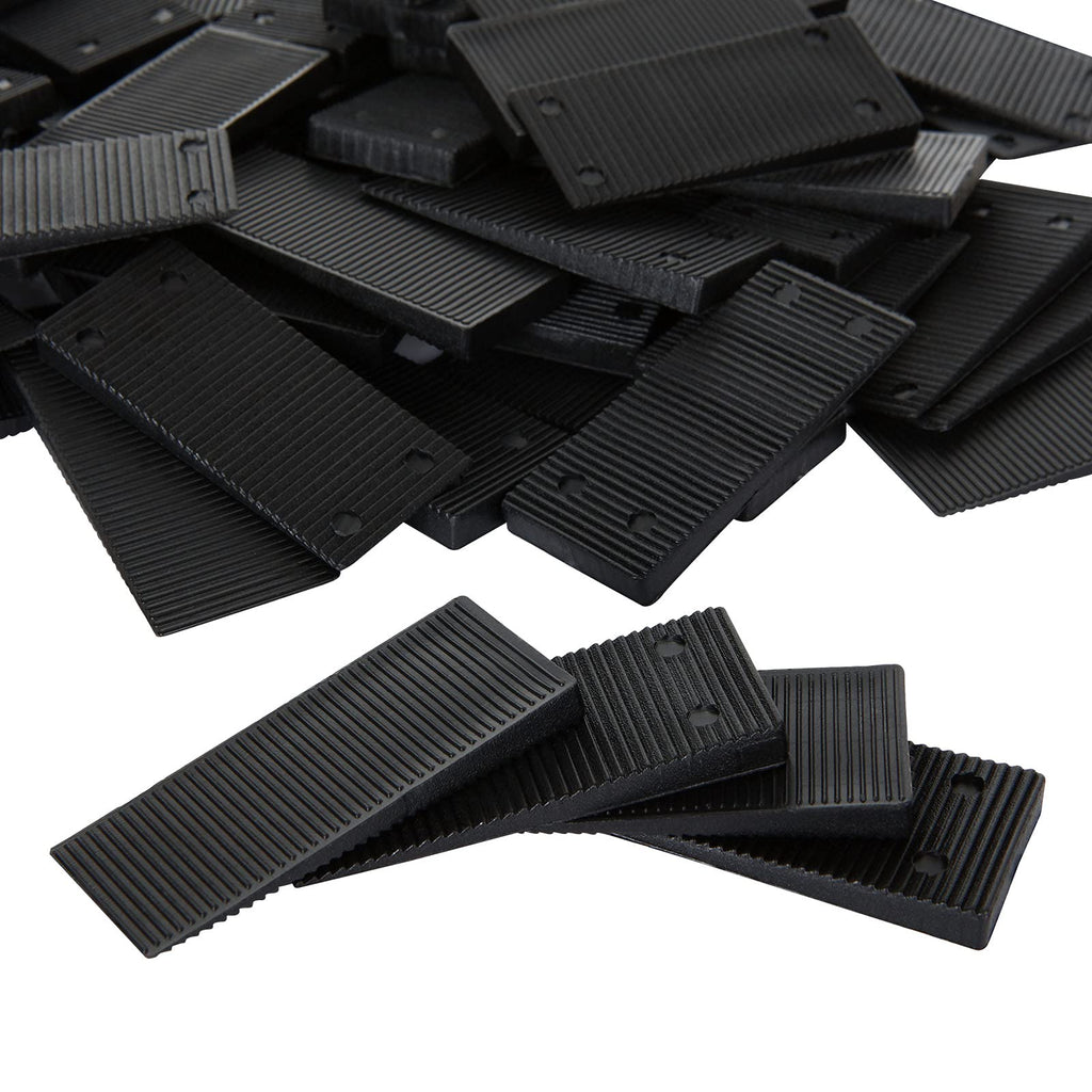 CYEAH Table Shims, 200 Piece, Premium Soft Furniture Levelers Restaurant Table Shims, Home Improvement DIY Levelers, Firm, Non-Slip, Perfect for Doors, Tables and More. Product features: Made of high quality plastic, can carry huge weights, up to 2000 pounds of weight and pressure . Sloping design and anti-slip base provide good gripping power and make furniture in place all the time. Keeping the furniture firm & parallel and say goodbye to the wobbles. Wide Application: These levelers can be stacked together in any combination or orientation to level.Suitable for furniture, appliances, shelves, toilet, desks and so on. Great for restaurants, home, garage, patios, office, schools, hospitals and more. Product specifications: Material: Plastic Color: black Size: 2.36 X 0.78 X0.24 Inch Package contents: 200 PCS Plastic Shims Warm prompt: If you are not satisfied with the quality of our products, please let us know. I guarantee that you will be based on 100% barrier-free refund guarantee.