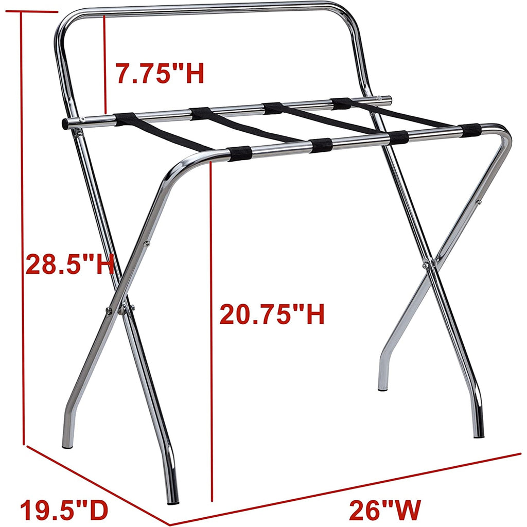 Davao Chrome Metal High-Back Folding Luggage Rack With Nylon Straps. Give Weekend Visitors In The Guest Room A Spot To Open Their Suitcase With This Helpful Davao Folding Luggage Rack Perfect For Making Your Home A Resort-Worthy Spot! Built With A High Back To Rest Against The Wall For Added Security And Prevent Luggage From Falling Over And Constructed Of Durable High-Quality Metal With An Attractive Solid Finish Providing An Upscale Clean Look To Match Any Dcor. Padded Legs Keep Your Pack In Place, Leaving It Safe From Scuffing Your Floors While Four Nylon Straps Handle Extra Heavy Luggage. Minimal Assembly Is Required And Its Folding Design Offers Easy Tucking Away When You'Re Not Entertaining.