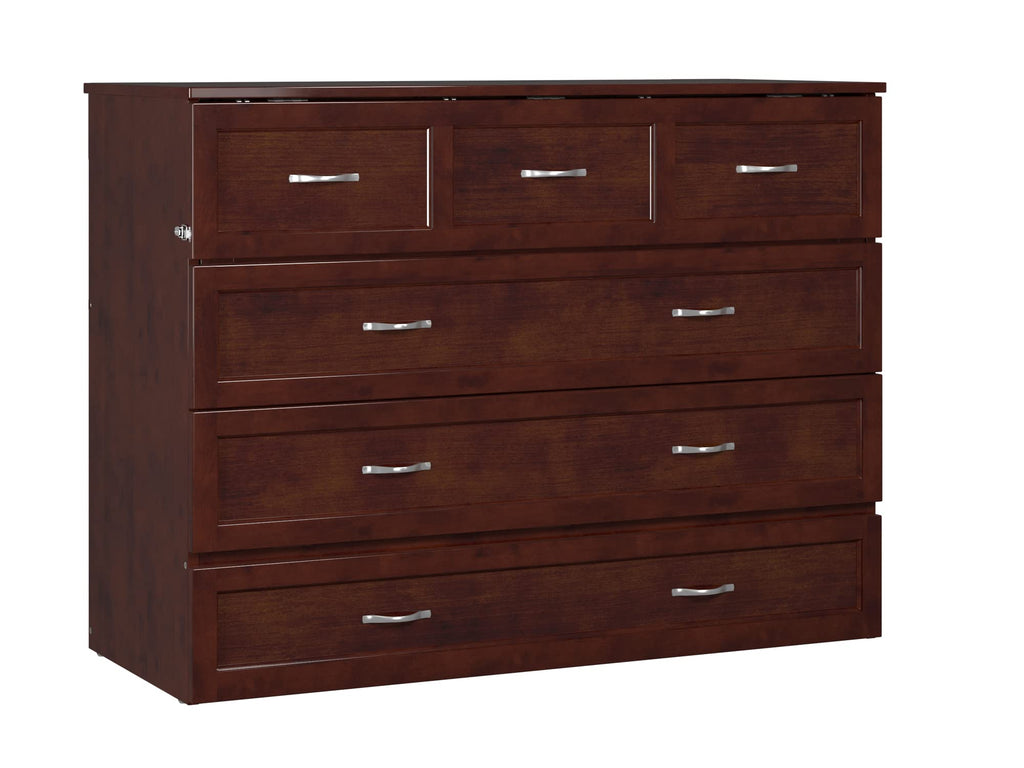 You Don'T Have To Sacrifice Space Nor Style With The Purchase Of A Murphy Bed Chest. Complete With A Fold-Out Full Mattress, The Deerfield Murphy Bed Chest Is The Perfect Combination Of Comfort And Convenience; When Tucked Away, The Bed Appears As An Elegant Chest Of Drawers. When It'S Time For Bed, Simply Unlatch The Doors And Lower The Mattress Supports. With The Additional Bonus Of A Built-In Charging Station, You Can Keep A Cellphone Charger Or Alarm Clock Close By.