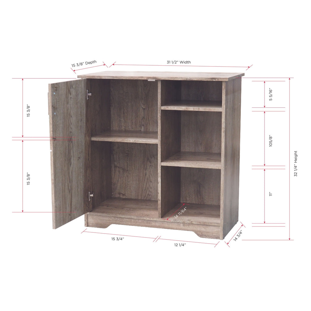 The dimensions of the cabinet are 32 inches in height, 15 inches in width, and 31.5 inches in depth.