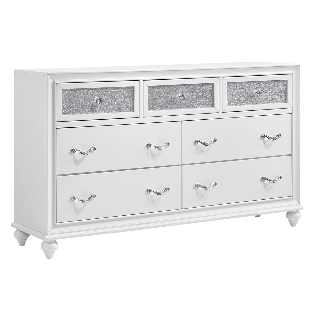 Dresser With 7 Drawers And Glitter Acrylic Front, White