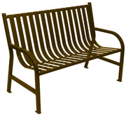 The Ergode Oakley Bench features a natural brown color that blends well with outdoor surroundings.