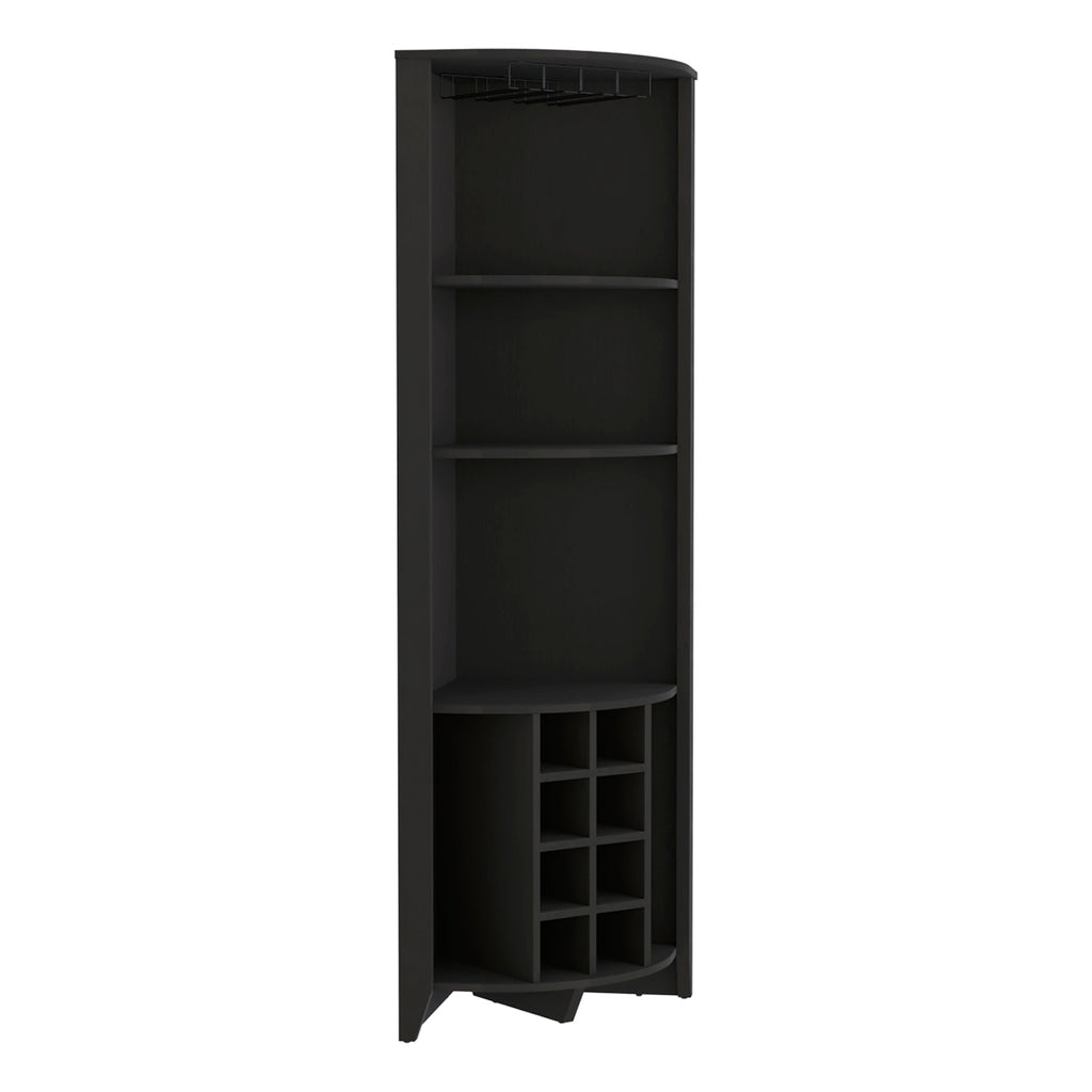 The Tuhome Essential Corner Bar Cabinet Is The Perfect Touch For Your Home Bar!With An Exclusive Ergonomic Size (19,2''W X 19,2''D X 71,1''H) Fits Perfect In Any Corner. This Sleek And Stylish Corner Bar Is Perfect For Any Home Looking To Add A Touch Of Exclusivity. The Built-In Storage Makes It Easy To Keep Your Drinks And Snacks Handy, While The Smooth Black Manufactured Wood Finish Will Complement Any Dcor.Includes Ample Storage Capacity With Three Shelves (15,5''H X 11,8''H X 17,7''H ), Eight Built-In Wine Rack(4,4''), And A Cup Rack Ideal For Your Glasses. Make Your Next Party Unforgettable With The Tuhome Essential Corner Bar.