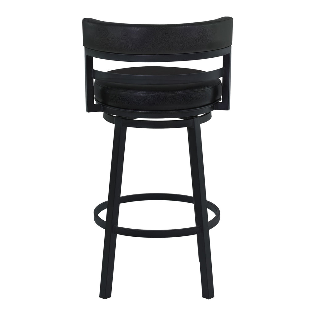 Add A Modern Touch To Your Kitchen Counter, Or Countr Height Dining Table With This Stylish And Well Crafted Counter Stool. Upholstered With Black Vegan Faux Leather, It Has An Open, Curved Back And A Round Foam Infused Cushioned Seat With A 360 Degree Swivel Mechanism, Perfect For Comfort And Ease Of Movement All Evening Long. Check Our Eva Collection For Matching Items.