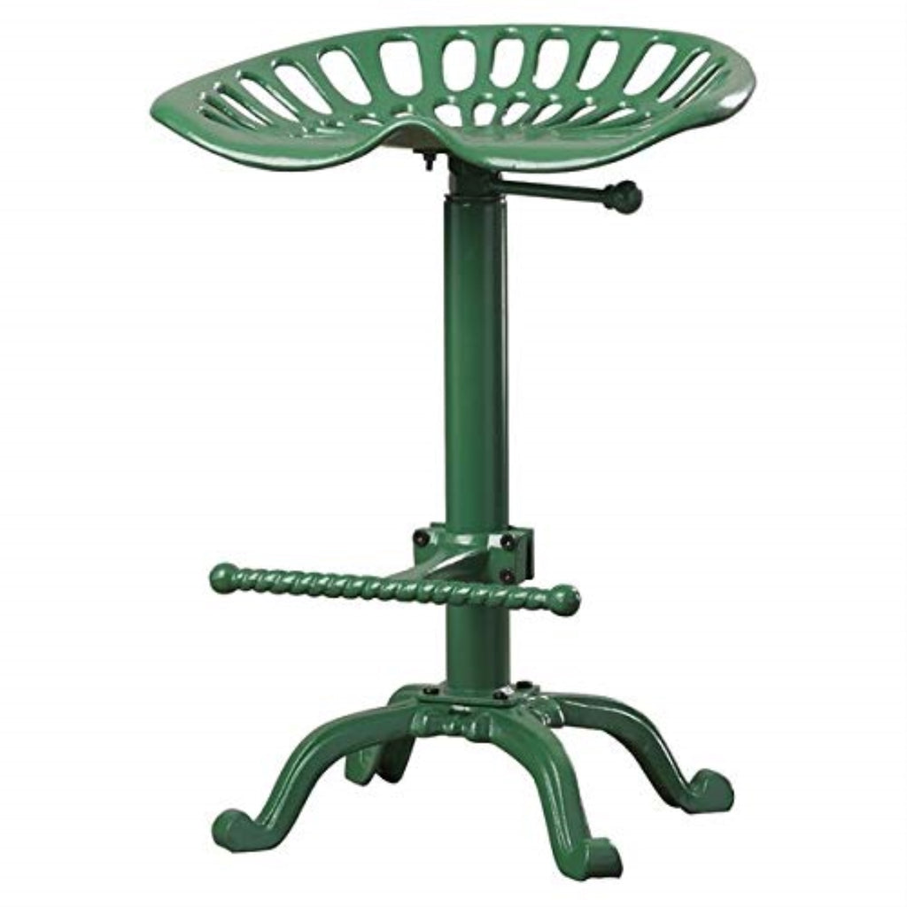 Our Farmhouse Adjustable Tractor Seat Stool Is A True Classic! Modeled After A Vintage Tractor Seat, This Cast Iron Seat Stool Features A Claw-Like Base To Bring A Perfect Traditional Vibe To Your Decor While The Stretcher Foot Rest Bar Lets You Sit In Comfort.Substantially Designed & Easily Adjustable Height Seat Adjusts From 22 To 33 Inches. Footrest Also Adjusts According To Your Needs To Comfortably Enjoy Drinks Or Conversation With Family & Friends. Green Powder Coated Finish, Detailed Legs, Seat Is A Replica Of A Tractor Seat, Seat Dimensions: 18.75W X 14.25D X 22 - 32H