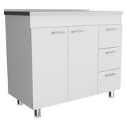 The TUHOME Ferretti Base Cabinet comes in a sleek white finish, which can complement a variety of kitchen decors.