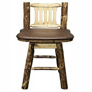Treat Yourself To The Most Desirable Of All The Montana Woodworks Barstools. This Unique Swivel Barstool Combines Handcrafting With A Durable Swivel Mechanism Allowing You And Your Guests To Rotate Smoothly For Views Of The Entire Party. The Artisans At Montana Woodworks Use Only Solid, American Grown Wood And The Durable, Millennia Old Mortise And Tenon Joinery System To Ensure You Will Own A Truly Heirloom Quality Item. Seat Height Is 30. Seat Width Is 18.5, Seat Depth Is 16. The Seat Is Upholstered In The Saddle Pattern. Finished In The Glacier Country Collection Style For A Truly Unique, One-Of-A-Kind Look Reminiscent Of The Grand Lodges Of The Rockies, Circa 1900. First We Remove The Outer Bark While Leaving The Inner, Cambium Layer Intact For Texture And Contrast. Then The Finish Is Completed In An Eight Step, Professional Spraying Process That Applies Stain And Lacquer For A Beautiful, Long Lasting Finish. Comes Fully Assembled. Capacity 350 Pounds.