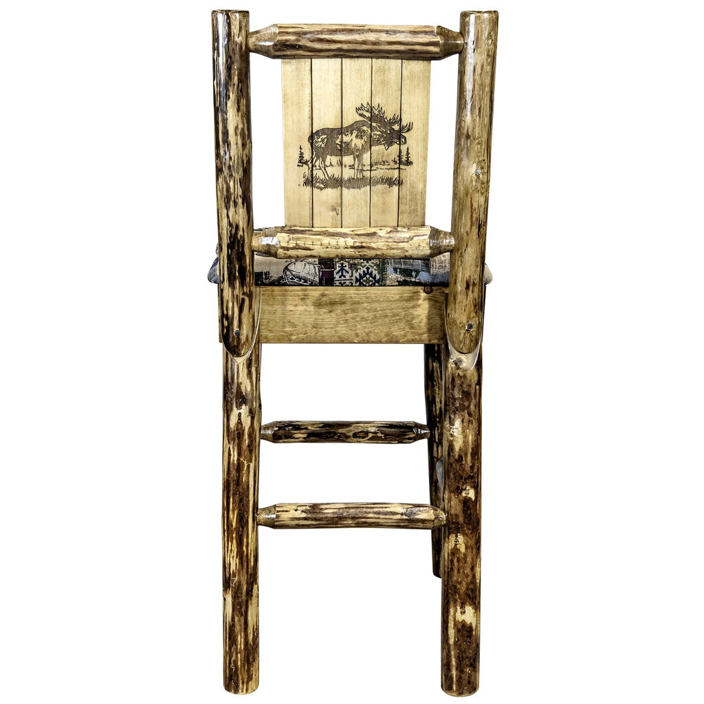 Glacier Country Collection Barstool W/ Back - Woodland Upholstery, W/ Laser Engraved Moose Design