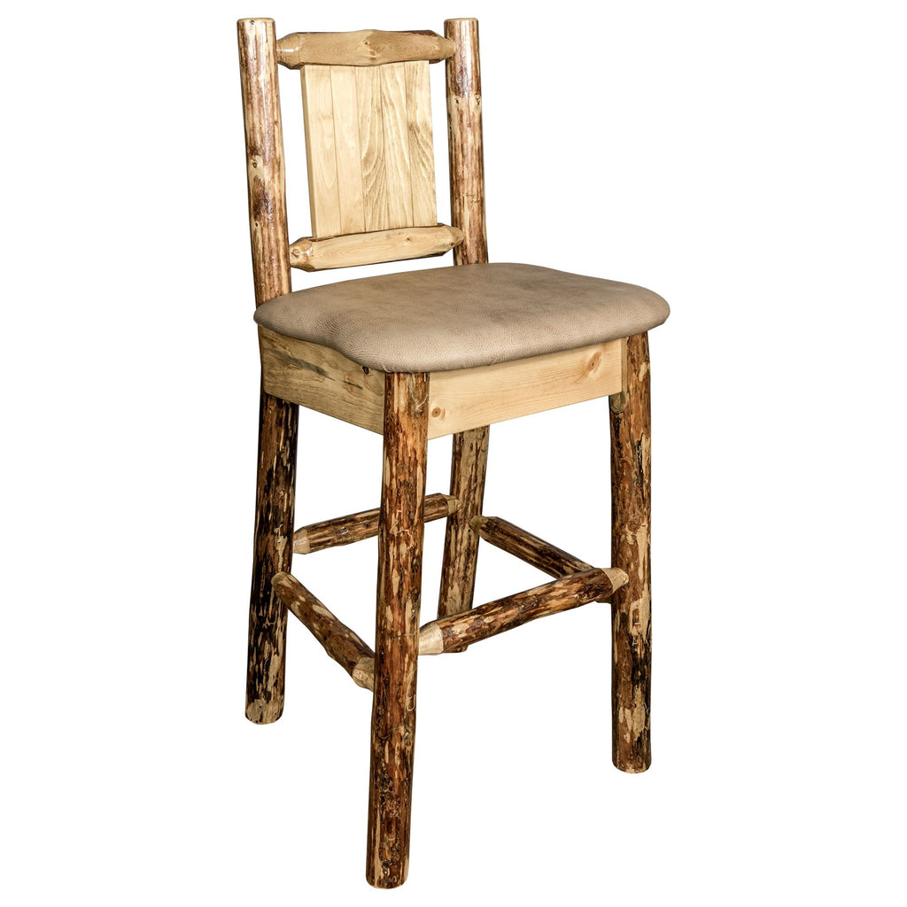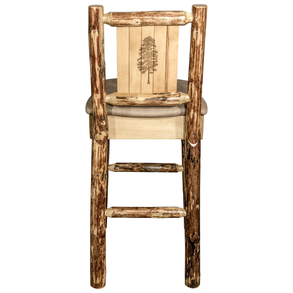 Glacier Country Collection Counter Height Barstool W/ Back - Buckskin Upholstery, W/ Laser Engraved Pine Tree Design