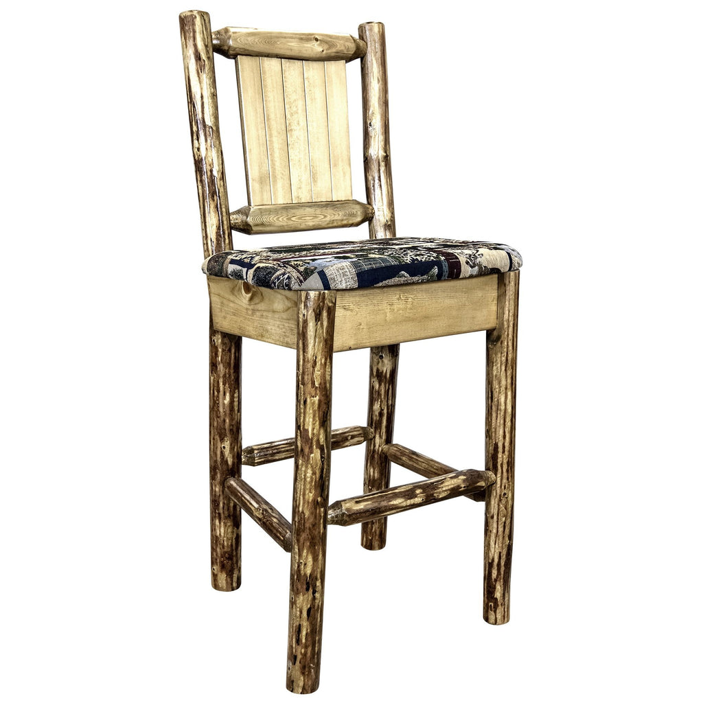 Glacier Country Collection Counter Height Barstool W/ Back - Woodland Upholstery, W/ Laser Engraved Elk Design
