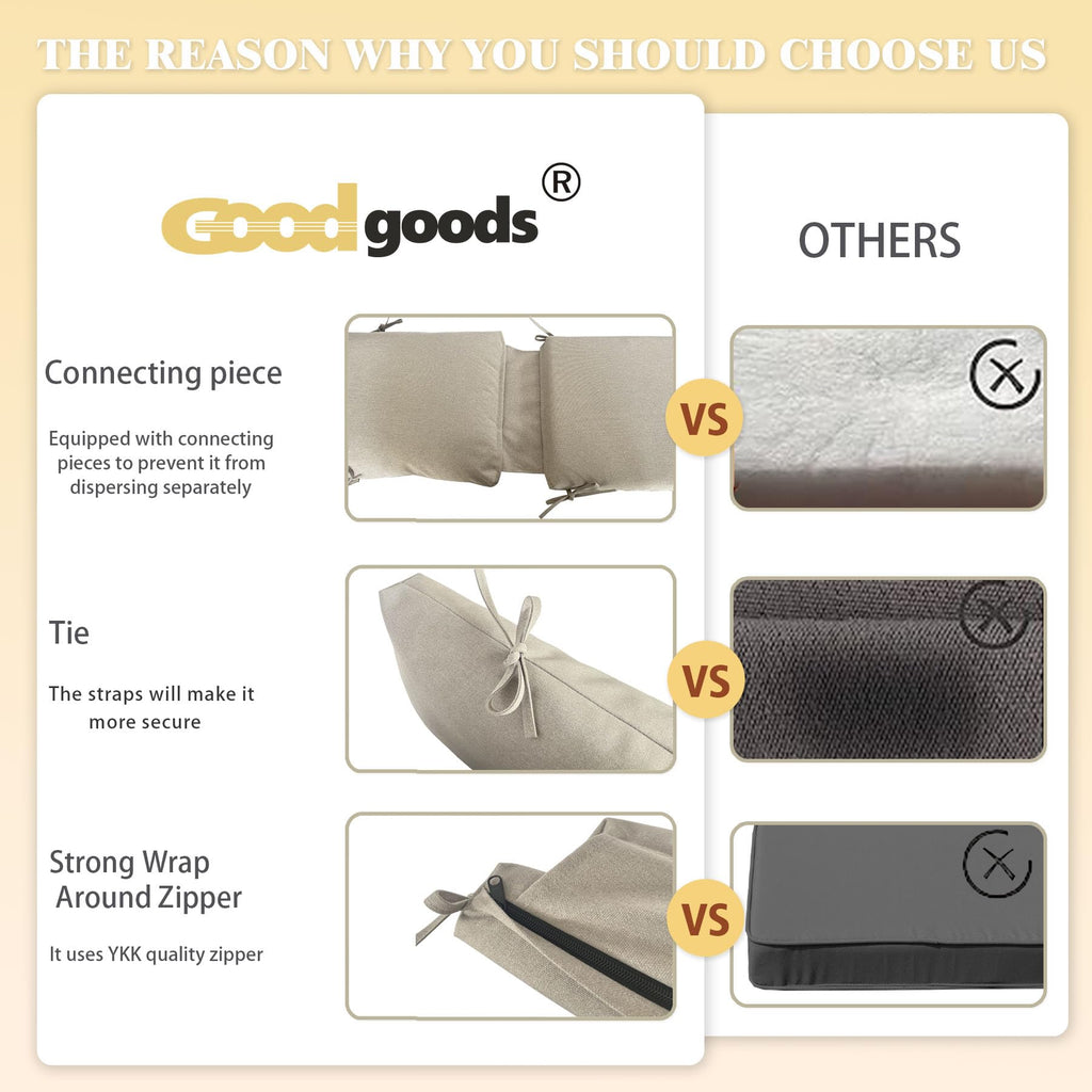 Goodgoods 20x42 Outdoor Dining Chair Cushion Set of 1 Patio Furniture Cushion Resilient Foam Filling Water-Proof Stain-Resis