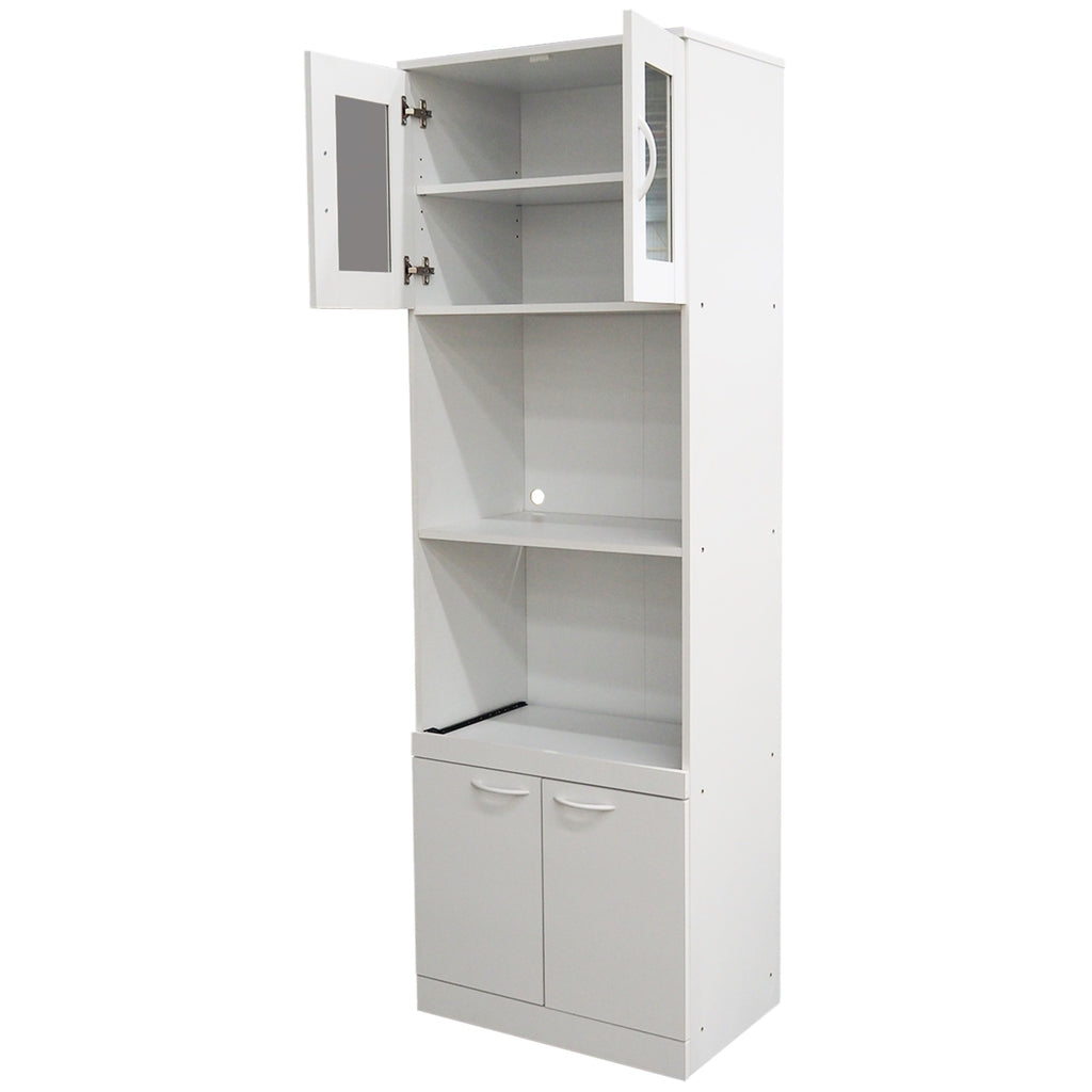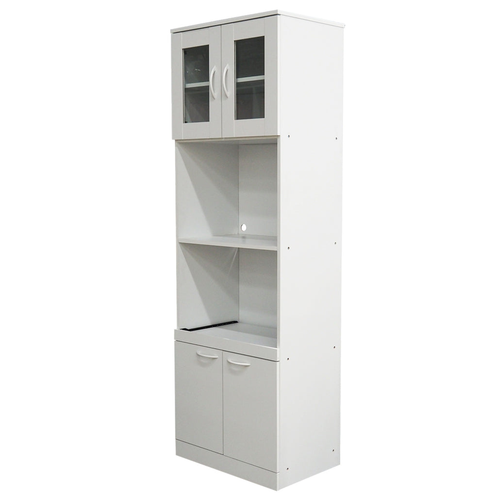 Gremlin Kitchen Storage Pantry Microwave Cabinet With Adjustable Shelves & Pull-Out Shelf, White Wood & Glass, Contemporary. Between Clearing Away Cookware And Stashing Your Favorite Snacks, It'S All Too Easy To Run Out Of Space For Everything A Kitchen Holds. This Gremlin Microwave Pantry Cabinet Is A Great Option For Adding A Touch Of Much-Needed Storage To Your Kitchen. The Upper Open Storage Space Features A Wire Management Grommet And Can Be Used To Store Your Microwave While Other Items Can Be Displayed In The Hutch That Showcases A Glass-Fronted Cabinet Or On The Lower Extendable Open Shelf. The Lower Single Adjustable Shelf Cabinet Is An Excellent Hide-Away For Mixing Bowls, Pots Or Dried Goods. A Clean White Finish Completes The Contemporary Style Of This Fantastic Kitchen Furniture Storage Option.Key Features:Finish: Whitematerials: Wood Laminated Partial Board; Glass Doors; Metal Hardwareoverall Weight: 93 Lbsoverall Dimensions: 24W X 16D X 71Hoverall Inner Upper Cabinet Storage Size: 22W X 13.5D X 16.5Hupper Open Shelf Storage Size: 21W X 14D X 15Hlower Open Shelf Storage Size: 21W X 14D X 16Hpull-Out Shelf Adds 11Overall Inner Lower Cabinet Storage Size: 22W X 13.5D X 16.5Hassembly Required