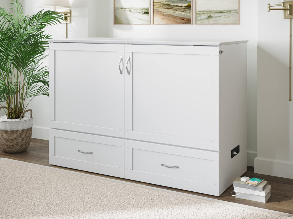 Elevate Your Living Space With The Hamilton Murphy Bed Chest: The Epitome Of Modern Functionality And Style. Available In Chic White, Warm Walnut, And Contemporary Grey, This Chest Seamlessly Complements Any Decor. Choose From Sizes Twin Xl, Full, Or Queen To Suit Your Needs. Unveil A World Of Convenience As This Sleek Chest Effortlessly Transforms Into A Comfortable Bed. The Minimalistic Panel Design Exudes A Minimalist Aesthetic While Maximizing Space. Crafted From High-Quality Wood, The Hamilton Murphy Bed Chest Is A Testament To Durability And Finesse. Enjoy The Convenience Of A Built-In Charger And A Spacious Storage Drawer, All While Relishing The Comfort Of The Included Mattress. Redefine Your Space With Hamilton Murphy Bed Chest Today!