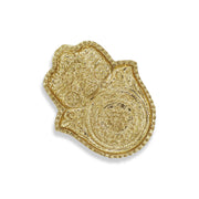 This decor piece is entirely handmade and hand crafted, featuring an intricate and textured Hamsa inspired design.