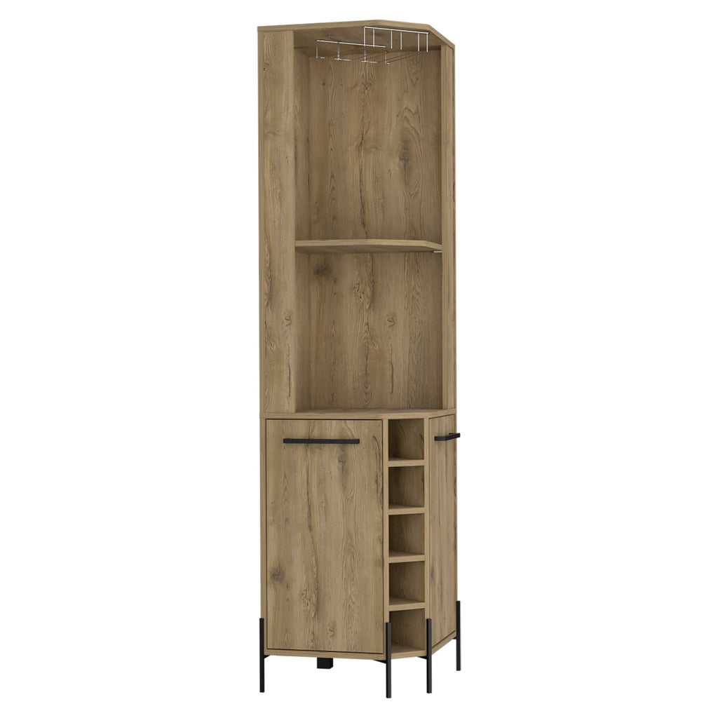 Looking For A Stylish Way To Show Off Your Favorite Drinks? Look No Further Than The Tuhome Hans Corner Bar Cabinet. Designed With A Macadamia Manufactured Wood Finish. This Modern Piece Features Five Built-In Wine Rack(4,4''), A Cup Rack, And Ample Storage Capacity With Two Shelves (22,2''H X 17,7''H X 23''W), Perfect For Any Wine Lover Or Cocktail Enthusiast. With Its Sleek Design And Modern Style, This Bar Cabinet Is Sure To Be A Conversation Starter At Your Next Party. So Grab A Bottle Of Your Favorite Vintage And Invite Your Friends Over For Some Good Times With The Tuhome Shanghai Corner Bar Cabinet.Measures (17,7''W X 17,7''D X 70,8'H) With Contemporary Style.
