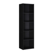 The Hodedah 5 Shelf Bookcase is available in multiple colors, allowing it to blend with various room decors.