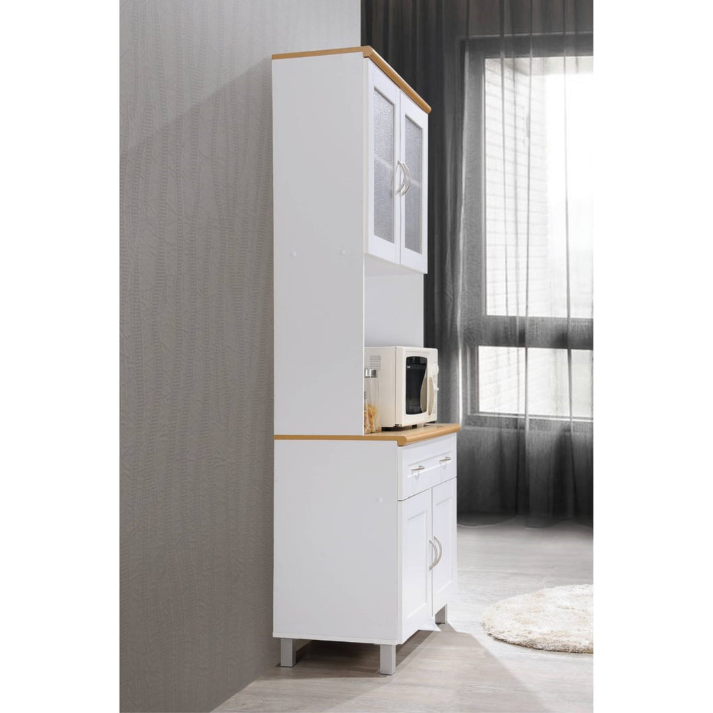 Hodedah Kitchen Cabinet With Top And Bottom Enclosed Cabinet Space In White