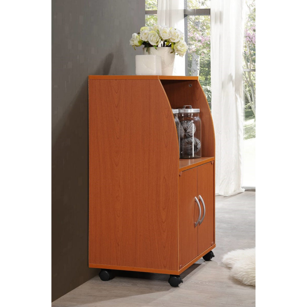 The Hodedah Mini Microwave Cart is available in multiple finishes, including cherry, black, and oak, allowing you to choose one that complements your kitchen decor.