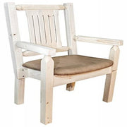 From Montana Woodworks, The Largest Manufacturer Of Handcrafted, Heirloom Quality Rustic Furnishings In America Comes The Homestead Collection Line Of Furniture Products. Handcrafted In The Mountains Of Montana Using Solid, American Grown Wood, The Artisans Rough Saw All The Timbers And Accessory Trim Pieces For A Look Uniquely Reminiscent Of The Timber-Framed Homes Once Found On The American Frontier. The Captain'S Chair By Montana Woodworks Is The Perfect Addition To Your Dining Set. Placed At The Head Of The Table Or Used All Around, These Chairs Are Sure To Please The Captain Of Your Table! Seat Height Is 18. Seat Width Is 18.5. Seat Depth Is 17. Capacity 350 Pounds. This Model Features The Comfy Upholstered Seat In The Buckskin Pattern. Comes Fully Assembled. This Item Is Sold Ready To Finish I.E., It Is Ready For The Purchaser To Paint, Stain Or Stain And Lacquer.
