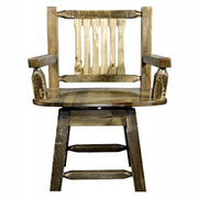 This Counter Height Captain'S Style Barstool With Swivel Features Solid, Genuine Lodge Pole Pine Construction And Is Created Using The Tried And True Mortise And Tenon Joinery System For True Heirloom Quality And Rugged Durability. The Legs, Back And Cross Supports Are Square Sawn For A Look Uniquely Reminiscent Of The Timber-Framed Homes Once Found On The American Frontier. This Barstool Features The Standard Ergonomic Wooden Seat. Seat Height: 24. Seat Width Is 19 Seat Depth Is 17. Fully Assembled. Capacity 350 Pounds. Comes Professionally Finished With Premium Grade Stain And Semi-Gloss Clear Lacquer. All Montana Woodworks Products Come With A Hand Crafted In Montana U.S.A.