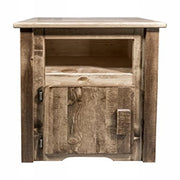 The End Table With Door Features A Storage Space (12 W X 14 H X 17 D) Nicely Concealed Behind A Wooden Door Hinged On The Left Side And An Open Storage Area (12 W X 7 H X 17 D) Immediately Above. Trim Pieces Are Square Sawn For A Look Uniquely Reminiscent Of The Timber-Framed Homes Once Found On The American Frontier. Fully Assembled. Fully Assembled. Comes Professionally Finished With Premium Grade Stain And Semi-Gloss Clear Lacquer. Hand Crafted In Montana U.S.A. Using Genuine Lodge Pole Pine!