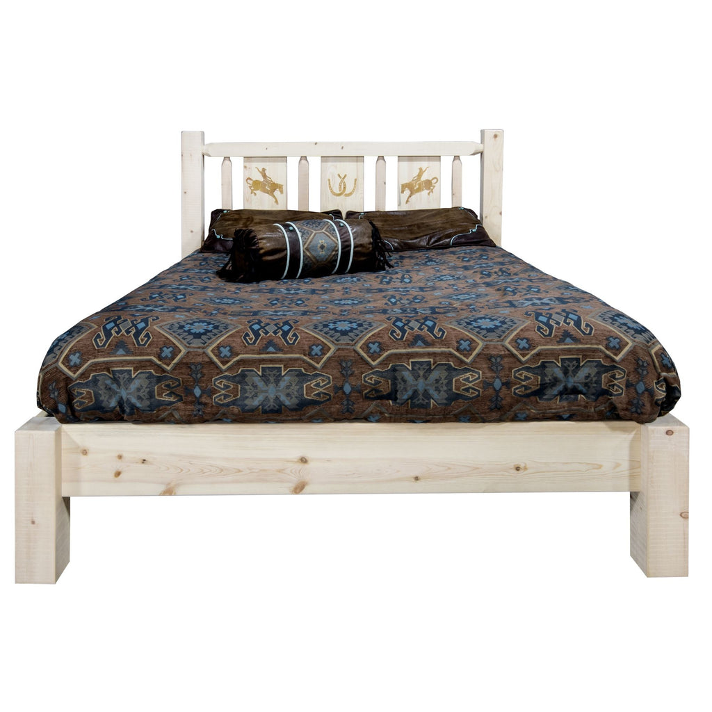 Homestead Collection Full Platform Bed W/ Laser Engraved Bronc Design, Ready To Finish